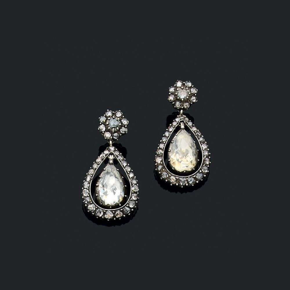 PAIRE DE PENDANTS D'OREILLES Diamants taille rose