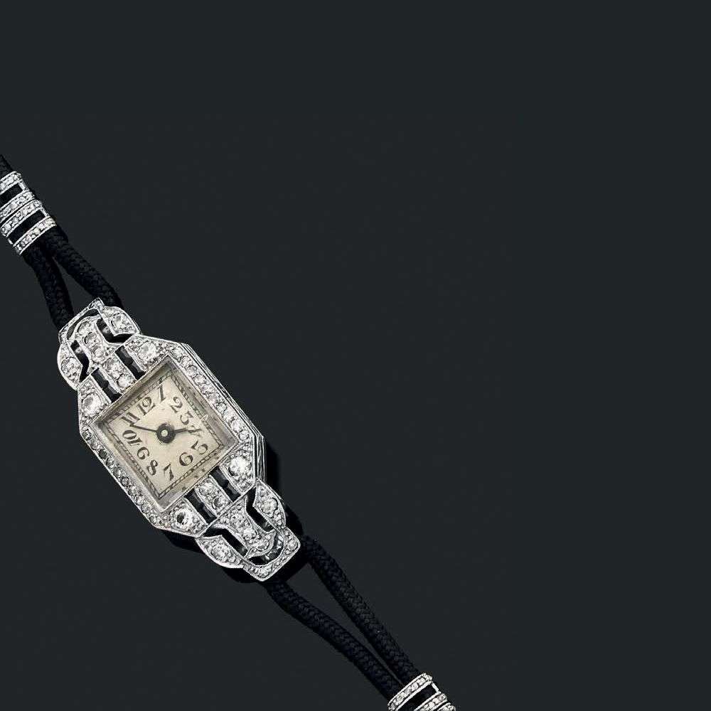 A diamond, onyx and platinum wristwatch