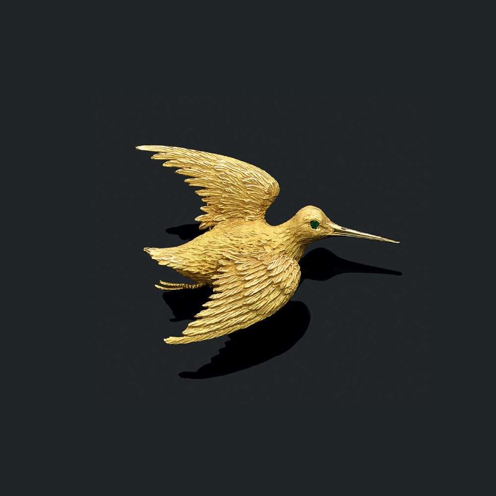 An emerald and gold brooch