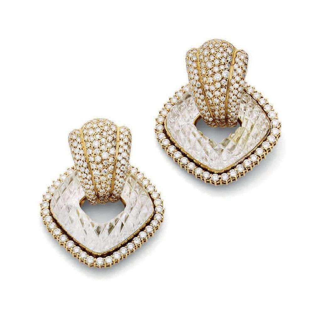 Rock crystal, diamond and gold earrings, signed Sabbadini