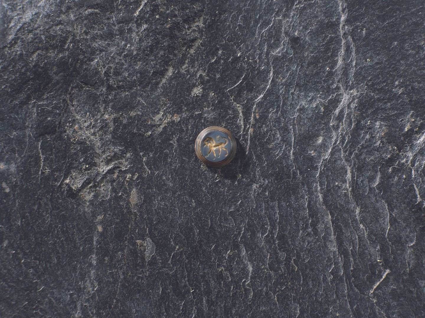 Lion passant gravé sur agate bleu