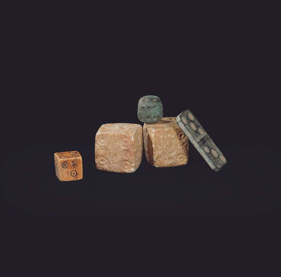 un en bronze et un dé en os à ocelles.
