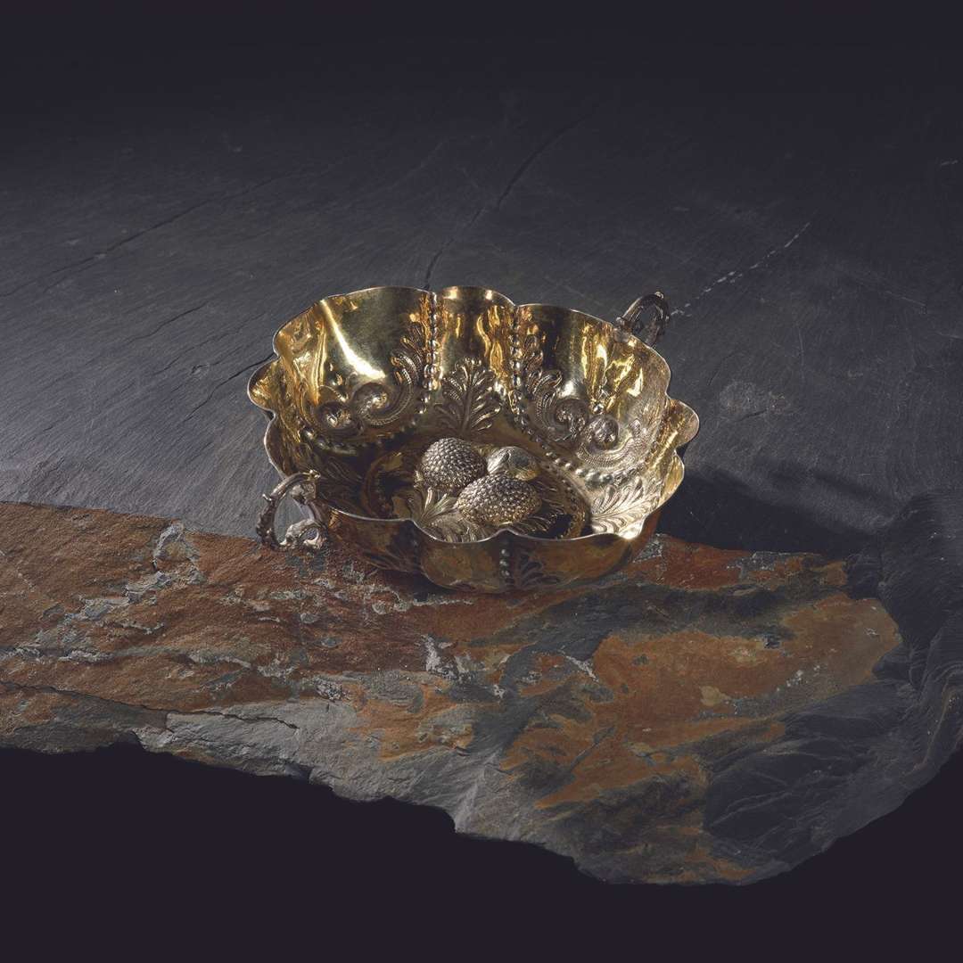 au repoussé à décor de fruits, feuilles