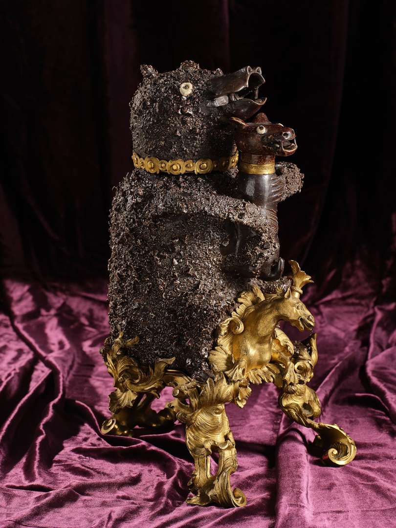 un chien qu'il étreint jusqu'à la mort. La tête de l'ours amovible