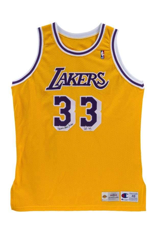 Outfit: jersey and shorts, not worn No. 33 by Kareem Abdul-Jabbar. Signed.