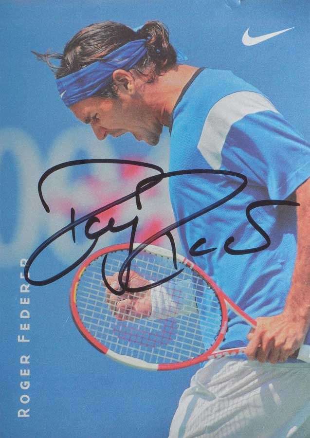 Autographed photograph by Roger Federer on a Nike holographic card.