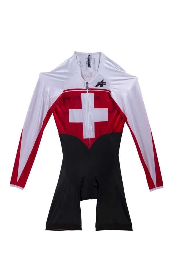 Combinaison (maillot et cuissard) de l'équipe nationale Suisse avec le dossart