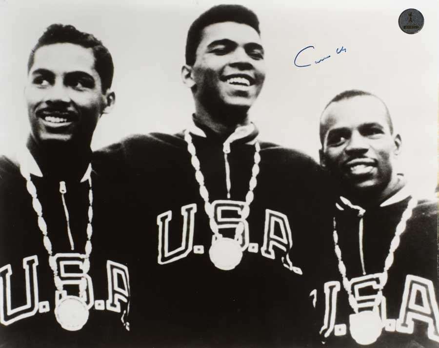 avec autographe de Cassisus Clay illustrant sa médaille d'or aux Jeux Olympiques de Rome en 1960.