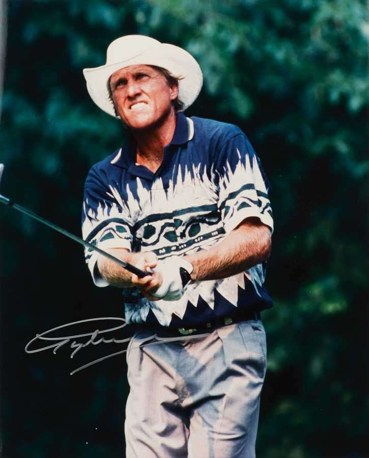 Set of autographed photographs of golf legends.