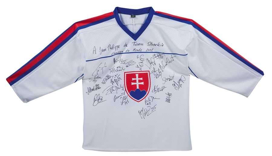 Non porté par Miroslav Satan et signé par toute l'équipe de Slovaquie lors des Championnats du Monde 2002.