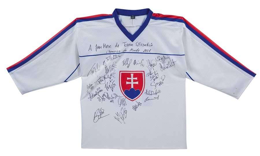 Non porté par Miroslav Satan et signé par toute l'équipe de Slovaquie lors des Championnats du Monde 2002.