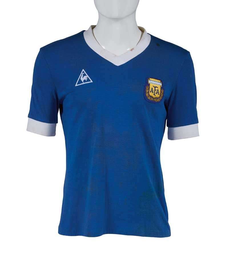 Porté par Mario Kempes lors d'un match amical de préparation de la Coupe du Monde 1982 en Espagne à Barcelone contre le club de Villajoyosa le 6 juin 1982. Mario Kempes compte 44 sélections pour 20 buts avec l'Argentine.