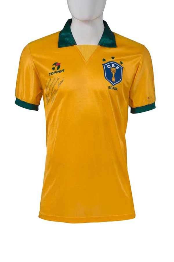 Porté et signé par Ricardo pour l'équipe nationale du Brésil le 24 juin 1990 lors du match Brésil - Argentine en huitièmes de finale de la Coupe du Monde 1990 en Italie (0-1).