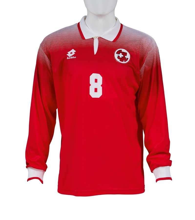 Porté par Christophe Ohrel lors d'un match de la Suisse lors des éliminatoires de l'Euro 1996 contre la Turquie le 26 avril 1995 (1-2). Christophe Ohrel compte 56 sélections et 6 buts pour la Suisse.