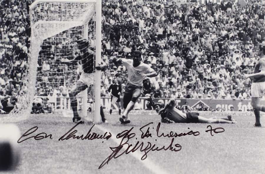 Set of autographed photographs of Brazilian soccer legends.