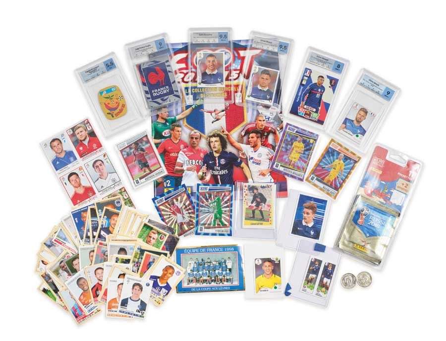 On y joint des cartes gradées MTG Grade de joueurs de l'équipe de France (Mbappé, Giroud, Benzema,...) ainsi que l'album Foot 2014-15.