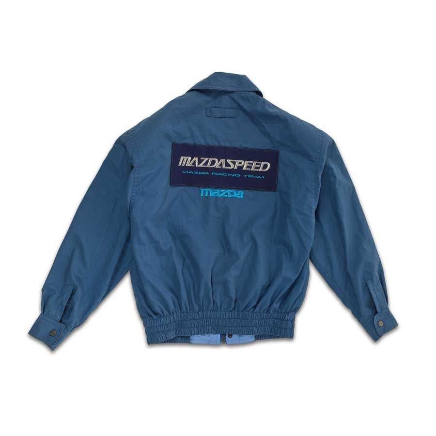 Veste Mazda Speed Racing team LeMans, bleue avec écriture au dos et sur la manche gauche, boutons et fermeture éclair en guise de double fermeture, taille M. Veste de l'écurie gagnante avec comme manager Jacky Ickx.
