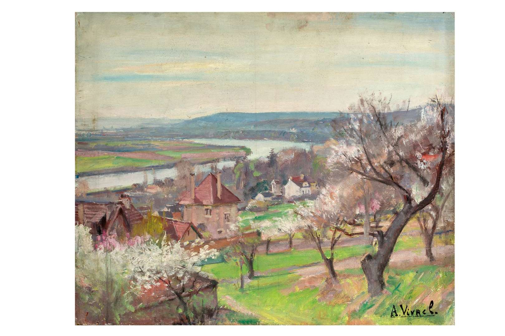 André-Léon Vivrel est né en 1886 à Paris. À seulement 15 ans, il décide de devenir peintre. Il est soutenu dans cette voie par sa mère, qu'il décrit comme son premier maître, et son père, négociant en vin et Premier prix de dessin en 1870. Élève au lycée Louis-le-Grand, André-Léon Vivrel rentre à l'Académie Julian en 1910. Il y suit les enseignements de Paul Albert Laurens puis fréquente l'atelier de Marcel Baschet et d'Henri Royer à l'École des Beaux-Arts. Il loue un atelier à Montmartre, au 65 rue Caulaincourt, à seulement huit numéros de celui d'Auguste Renoir. Sa première participation au Salon des artistes français date de 1913. Mobilisé en 1914, il reçoit la Croix de guerre pour conduite héroïque en 1917. Après la guerre, il retrouve son atelier montmartrois. Il se voit décerner une mention honorable au Salon de 1920 et l'État lui achète les deux natures-mortes qu'il expose au Salon des indépendants. Il y présente également deux portraits de Bretonne peints au retour d'un séjour à Ploumanac'h (Côtesss d'Armor). En 1922, Vivrel apparaît pour la première fois au Salon de la Société Nationale des Beaux-Arts. Après avoir reçu le prix Deldebat de Gonzalva en 1932, il obtient, l'année suivante, une médaille d'argent au Salon des artistes français avec « Le Temps des cerises ». En 1934, Vivrel présente des baigneuses, premier tableau d'une série de grands nus envoyés au Salon jusqu'en 1943. Aboutissement de sa recherche sur le nu féminin, ses « Baigneuses » de 1939 sont gratifiées d'une médaille d'or au Salon des artistes français. Cette ultime récompense couronne une médaille d'argent obtenue par Vivrel en 1937, lors de l'Exposition internationale des Arts et Techniques de Paris. La critique salue unanimement son talent et, en 1940, Louis Paillard n'hésite pas à écrire à la une du « Petit journal » du 6 mai 1940 : « André Vivrel, apparaît je le proclame, comme l'un des meilleurs en ce Salon [des artistes français] ». L'exposition « Vivrel - peintures récentes », organisée par la Galerie de Berri en mai 1942, illustre, en 31 tableaux, la diversité des genres abordés par Vivrel mais c'est celui du paysage qu'il explore avec le plus de passion. Sa terre d'élection est le Loiret, où son frère aîné Marcel possède une résidence secondaire à Châtillon-sur-Loire, non loin de Champtoceaux. Aux lendemains de la Grande Guerre, désargenté, il s'y réfugie pour peindre sur le motif à moindres frais. Au printemps 1926, Vivrel est de nouveau en Bretagne, d'où il rapporte le « Port de Camaret » exposé au Salon des Tuileries de 1926. Quelques années plus tard, en 1934, il retourne en Côtes d'Armor, où il compose des marines qui sont autant d'études de ciel. Vivrel passe l'été 1926 en Corse. Il y réalise des aquarelles qui sont présentées, dès l'automne, à la Galerie Georges Petit puis à New York. À chaque fois, une critique unanime vante leurs qualités : « L'exposition d'André Vivrel est d'un artiste sensible, fin, tout en restant larggge dans ses conceptions. Ses vues de Corse, de Bretagne et de Paris sont comme ses fleurs délicatement harmonieuses » (« La Semaine à Paris », 12 novembre 1926, p. 63). En 1928, il se rend de nouveau dans le Midi. Restituant la chaude et vibrante lumière de Provence, il peint « Le port de Saint-Tropez » exposé, la même année, au Salon des Indépendants. Le thème de la Méditerranée s'impose également au Salon des Tuileries, où Vivrel présente des vues de port et des paquebots, témoins d'une industrie touristique florissante. Quand Vivrel n'est pas sur les routes de France, il prend Paris pour modèle. Il peint les ruelles de la butte Montmartre et les monuments de la capitale, comme la cathédrale Notre-Dame, qu'il décline en série à l'instar de Monet. Il aime à s'attarder sur les quais de la Seine, qui lui offrent de nombreux points de vue insolites sur la ville et lui inspirent des peintures qui ne sont pas sans rappeler les paysages parisiens d'Albert Lebourg. Peignant jusqu'à son dernier souffle, André-Léon Vivrel s'éteint à Bonneville-sur-Touques, le 7 juin 1976.