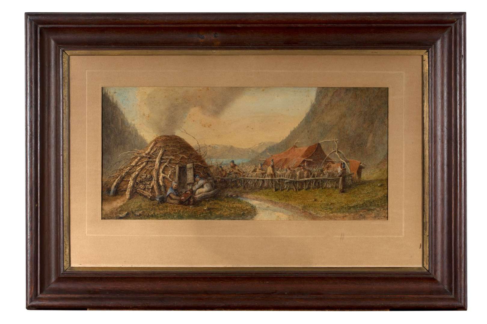 Watercolor and gouache on paper, signed '[Alb?] Berg' and dated '1866' lower right