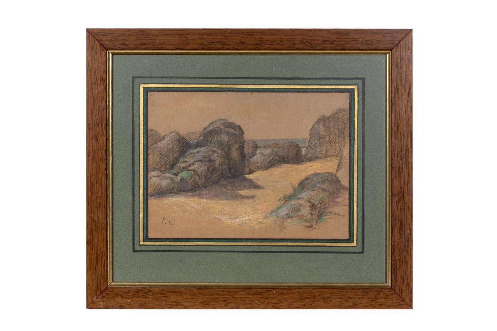 Graphite and colored pencils on paper, signed with the artist's initials lower left