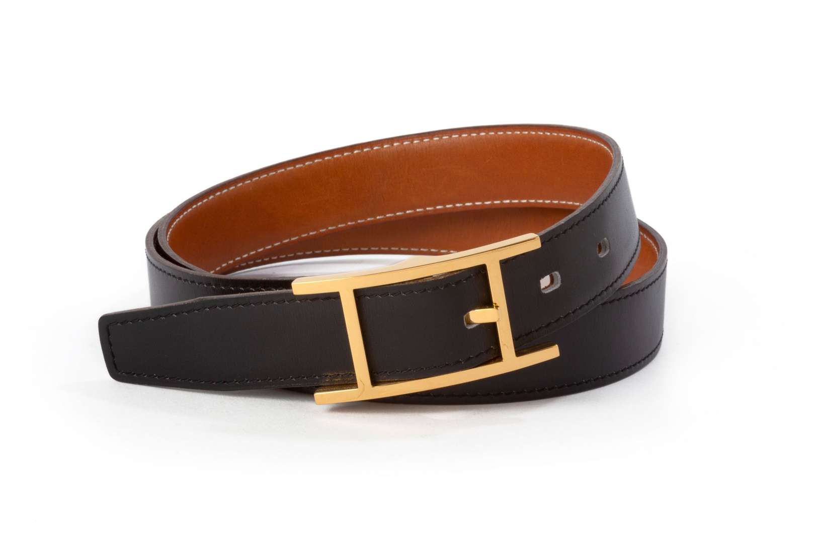 Cuir noir avec surpiqûres noires et marron avec surpiqûres blanches