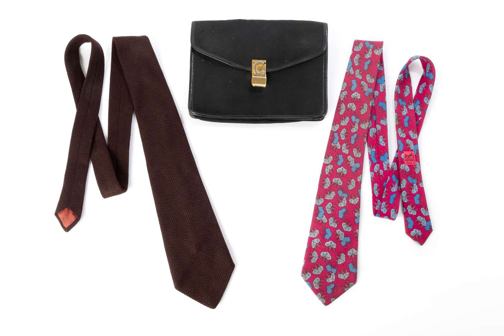 On joint une pochette en tissu noir, garniture en métal doré de marque Celine.
