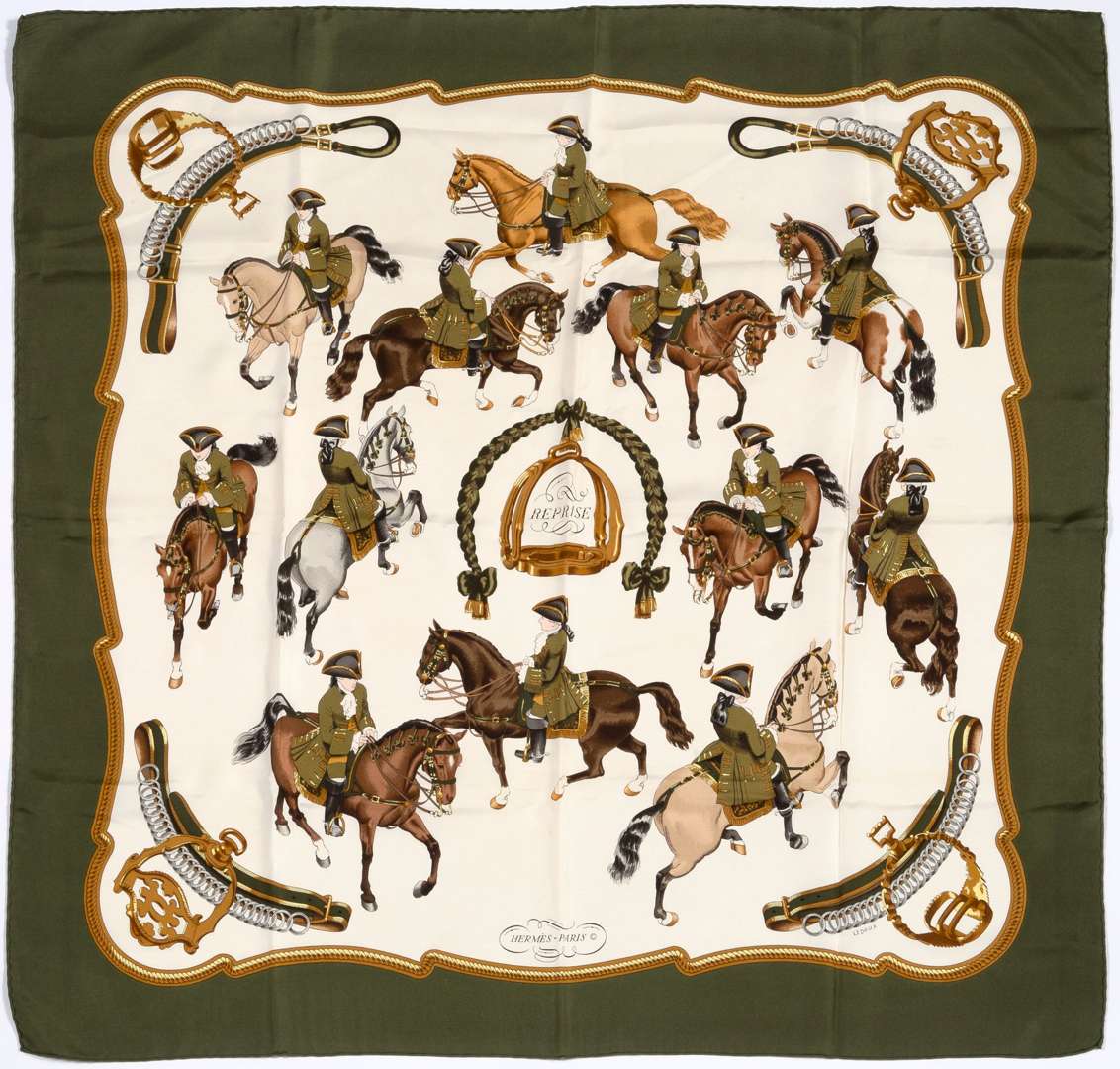 Carré de soie dessiné par Philippe Ledoux, dans les tons de vert et blanc
