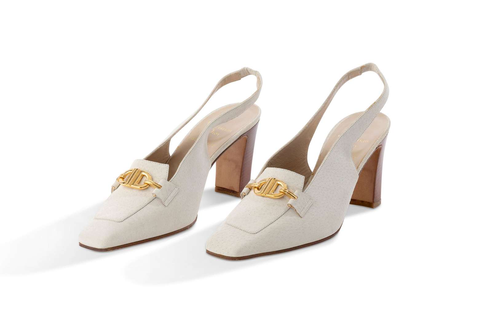 Paire d'escarpins slingbacks en cuir nubuck crème