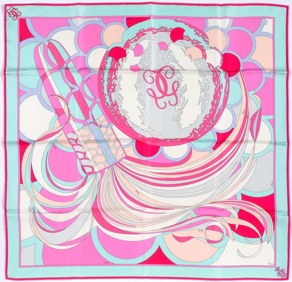 Carré de soie dans les tons de rose et de bleu dessiné par Emilio Pucci