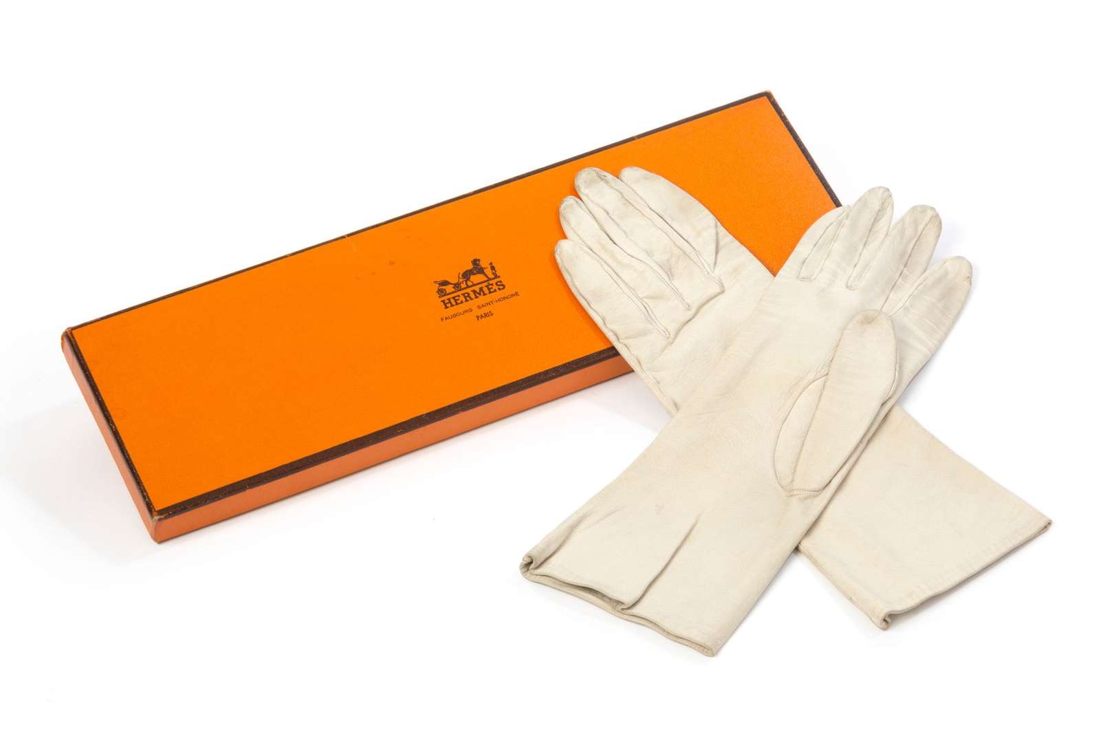 Gants en cuir de veau crème.