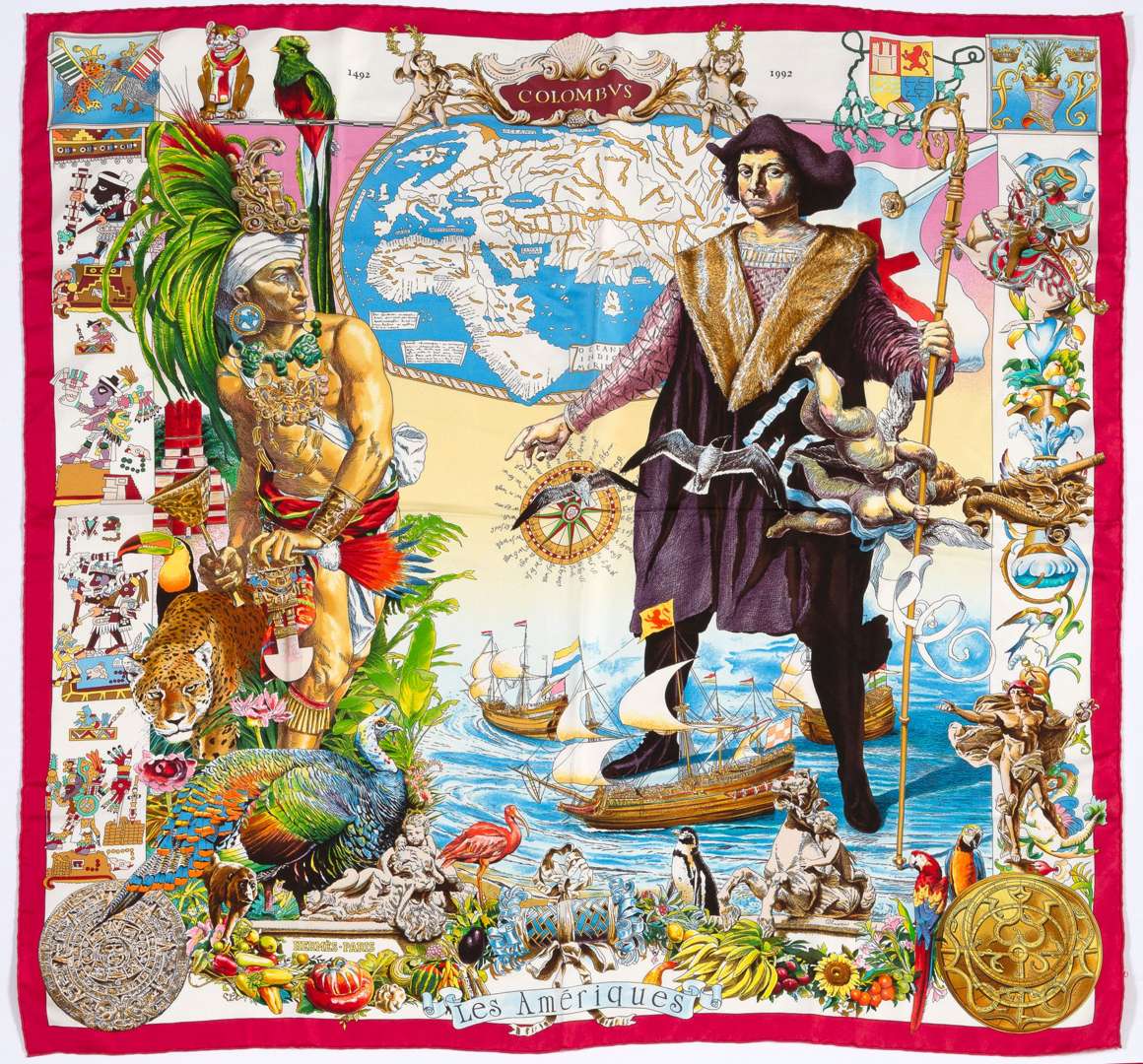 Carré de soie dessiné par Olivier Kermit, dans les tons mutlicolors.