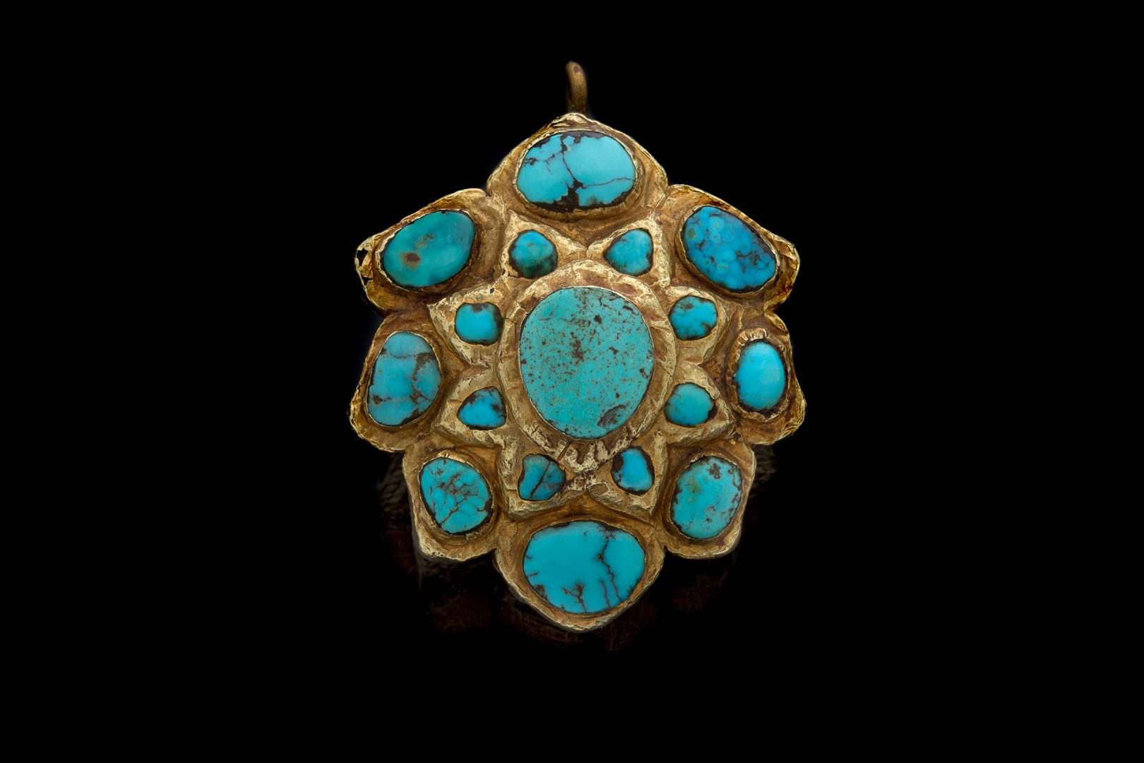 Pendentif en feuille d'or et turquoise.