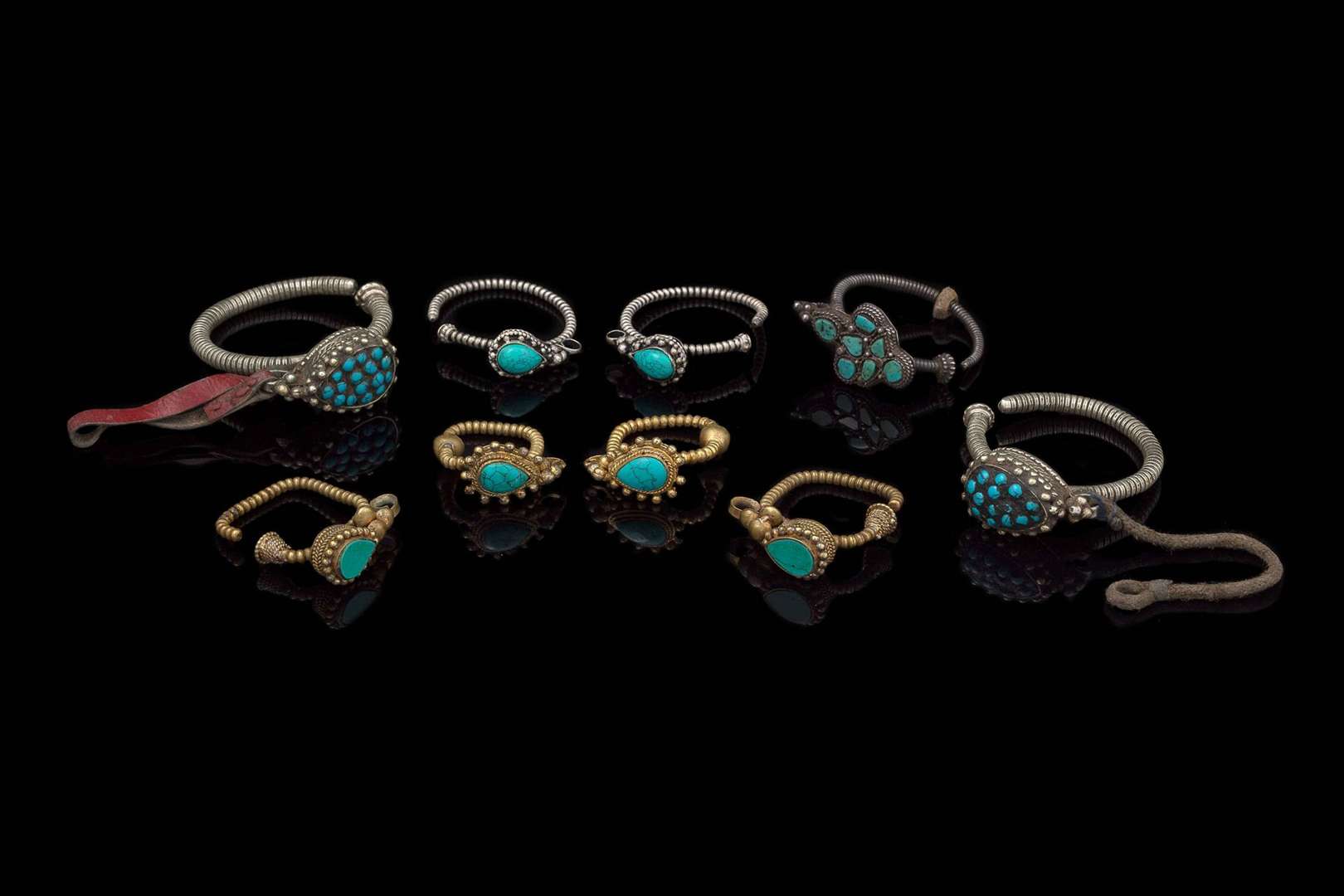 Ensemble quatre paires d'ornements d'oreille incrustés de turquoise.