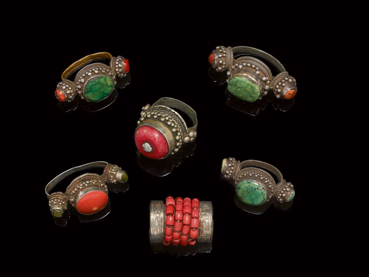 Ensemble de six bagues et perles en argent pour la chevelure.