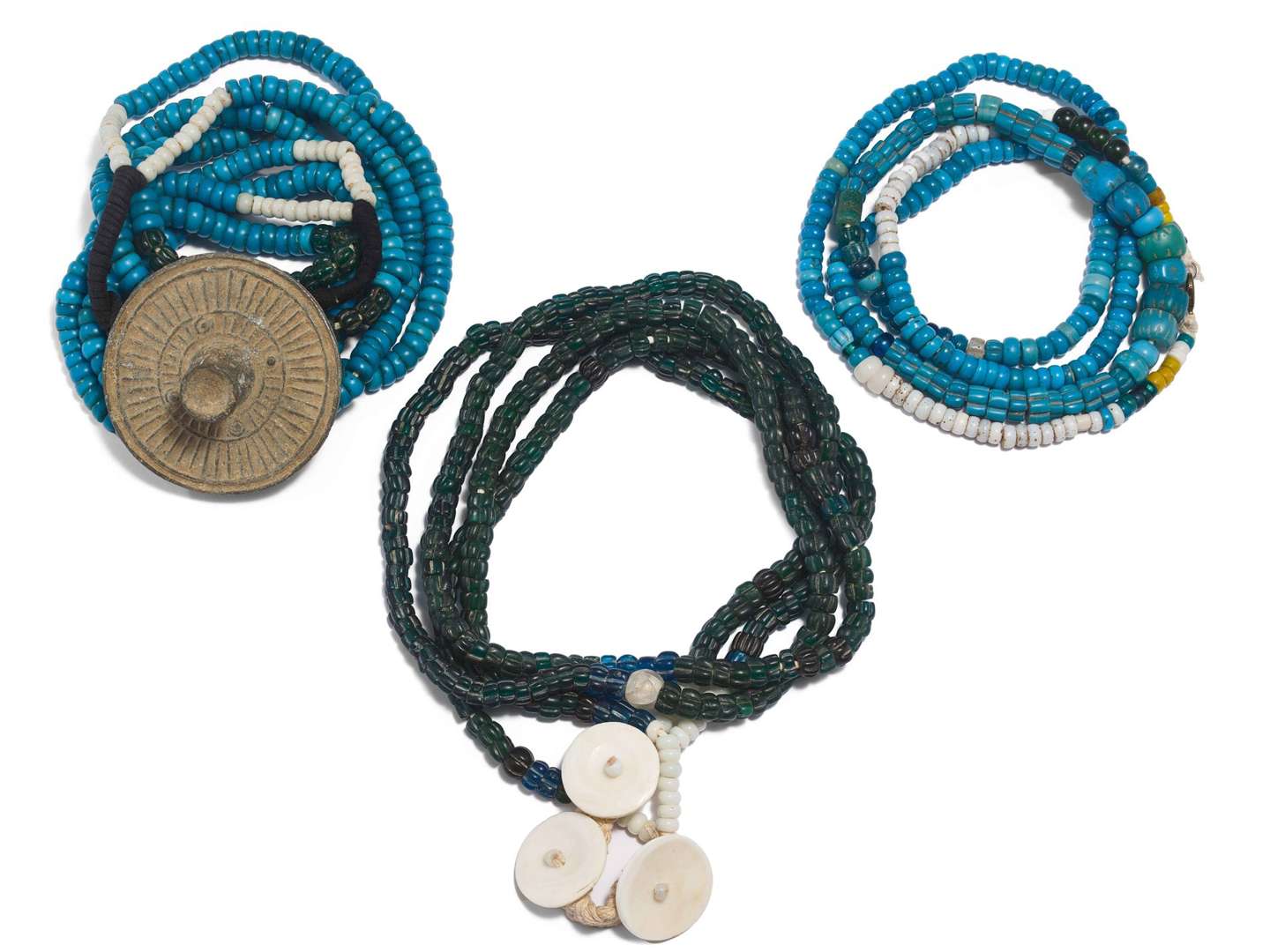 Ensemble de trois colliers en perles de verre.