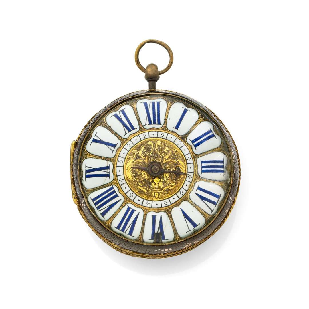 Montre oignon en métal doré gainée de galuchat marron à une seule aiguille avec balancier « pendulum »