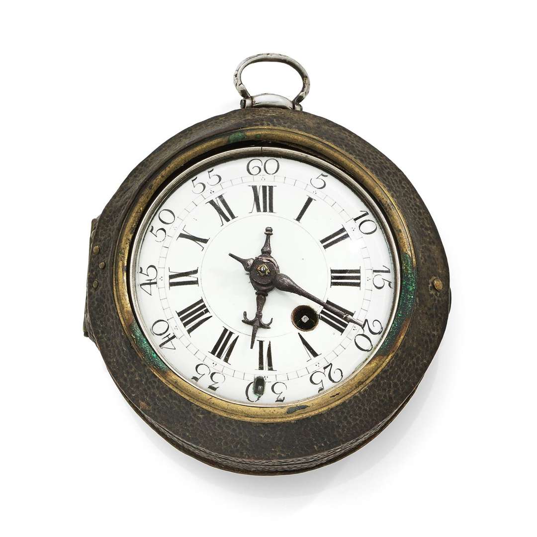 Silver onion repeating watch with leather protective case
