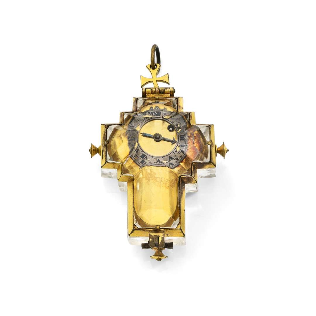 Montre crucifix de style Renaissance en métal doré et cristal de roche