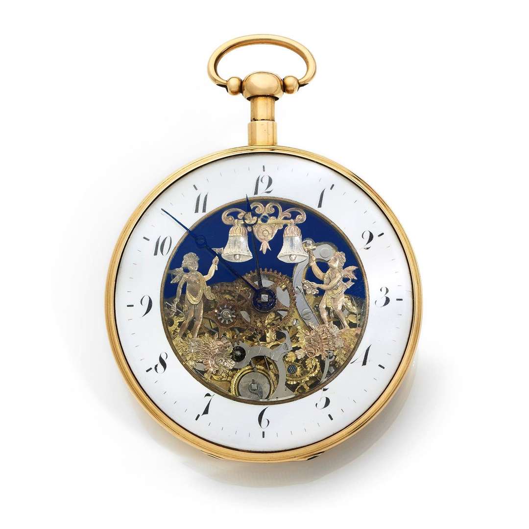 Gold automaton and quarter repeating skeleton watch