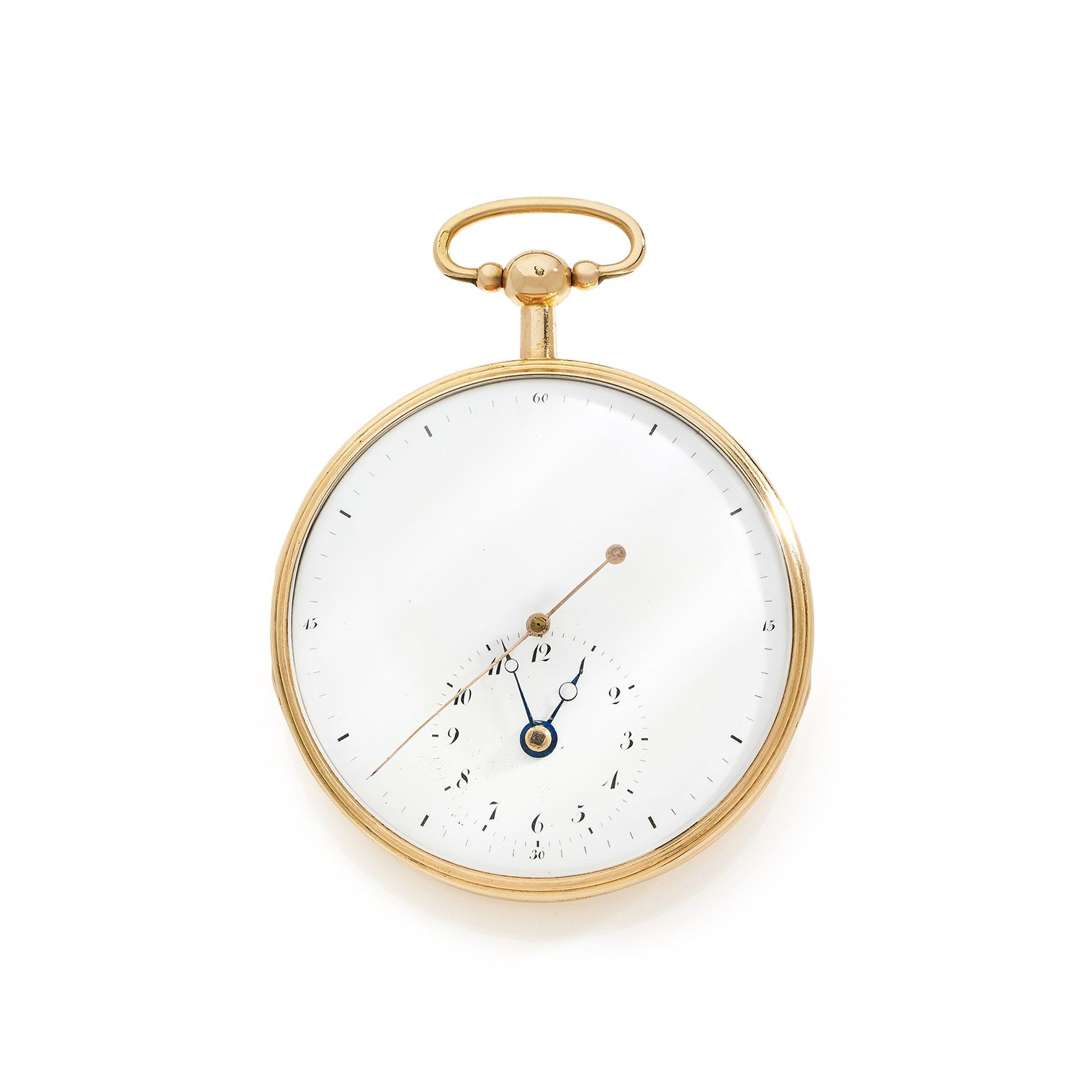 Le mécanisme de cette montre nous rappelle le travail du célèbre horloger Jean-Moïse Pouzait (1743-1793), que l'on surnomme « le père de la seconde morte ». En 1776, cet horloger dépose à la Société des Arts de Genève un mémoire basé sur les principes d'une montre utilisant une « seconde morte indépendante ». Grâce à cette invention précurseur à la fin du XVIIIe siècle, de nombreux horlogers suivront l'exemple des travaux de Moïse Pouzait, tel notre exemple avec un échappement duplex à marche lente.
