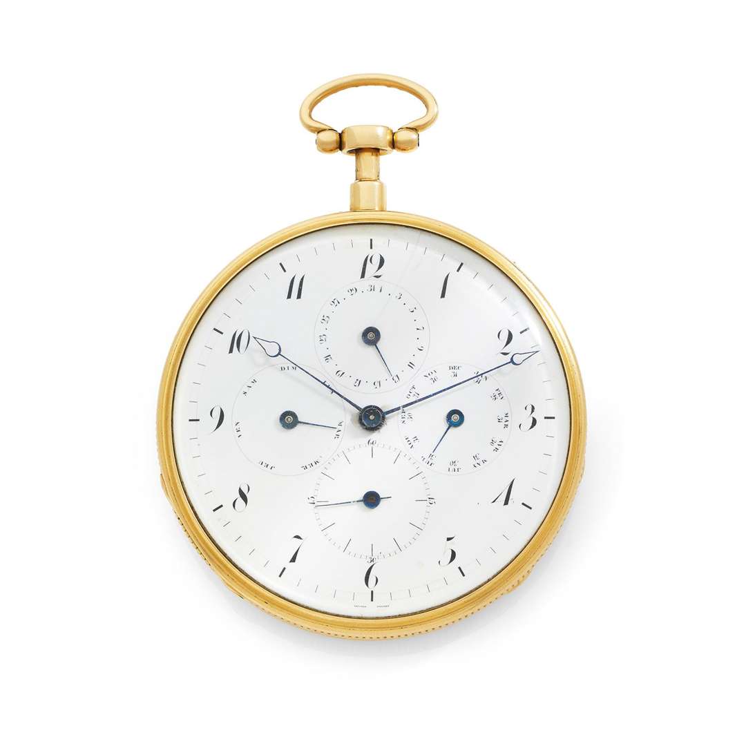 Gold quarter repeating watch with serpent gongs and triple calendar