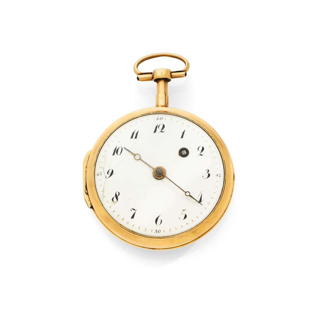 Mouvement : mécanique avec remontage à clef, coq ciselé et percé, balancier spiral trois bras, disque de réglage avance / retard, non signé