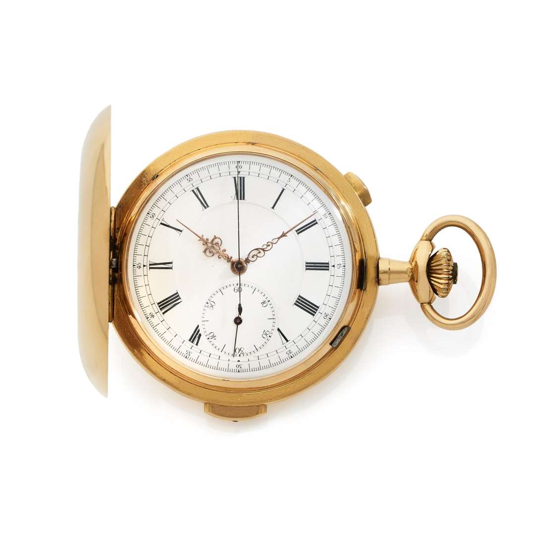 Gold chronograph and minute repeating hunting cased pocket watch
