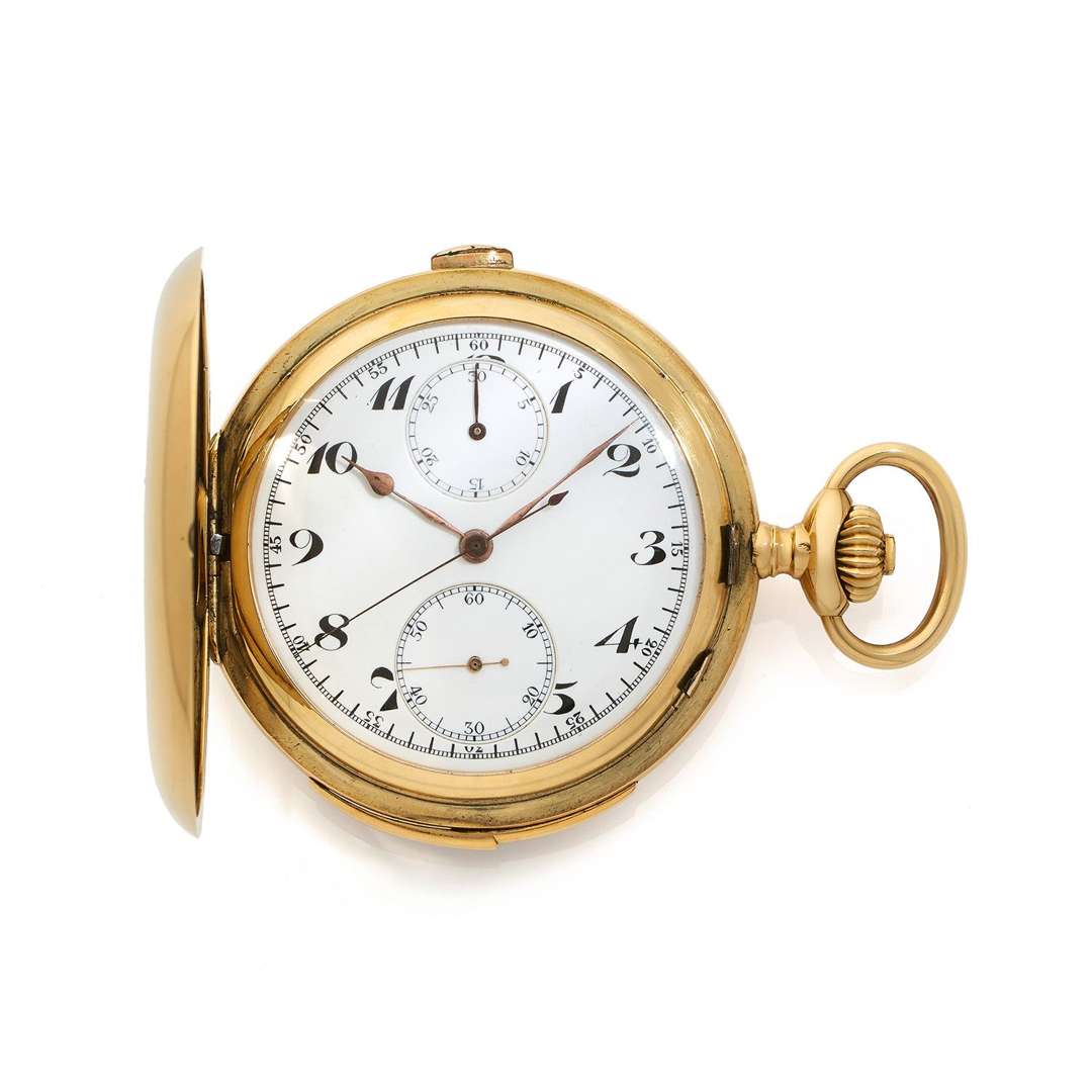 Montre de poche savonnette en or 18k (750) avec chronographe et répétition des minutes
