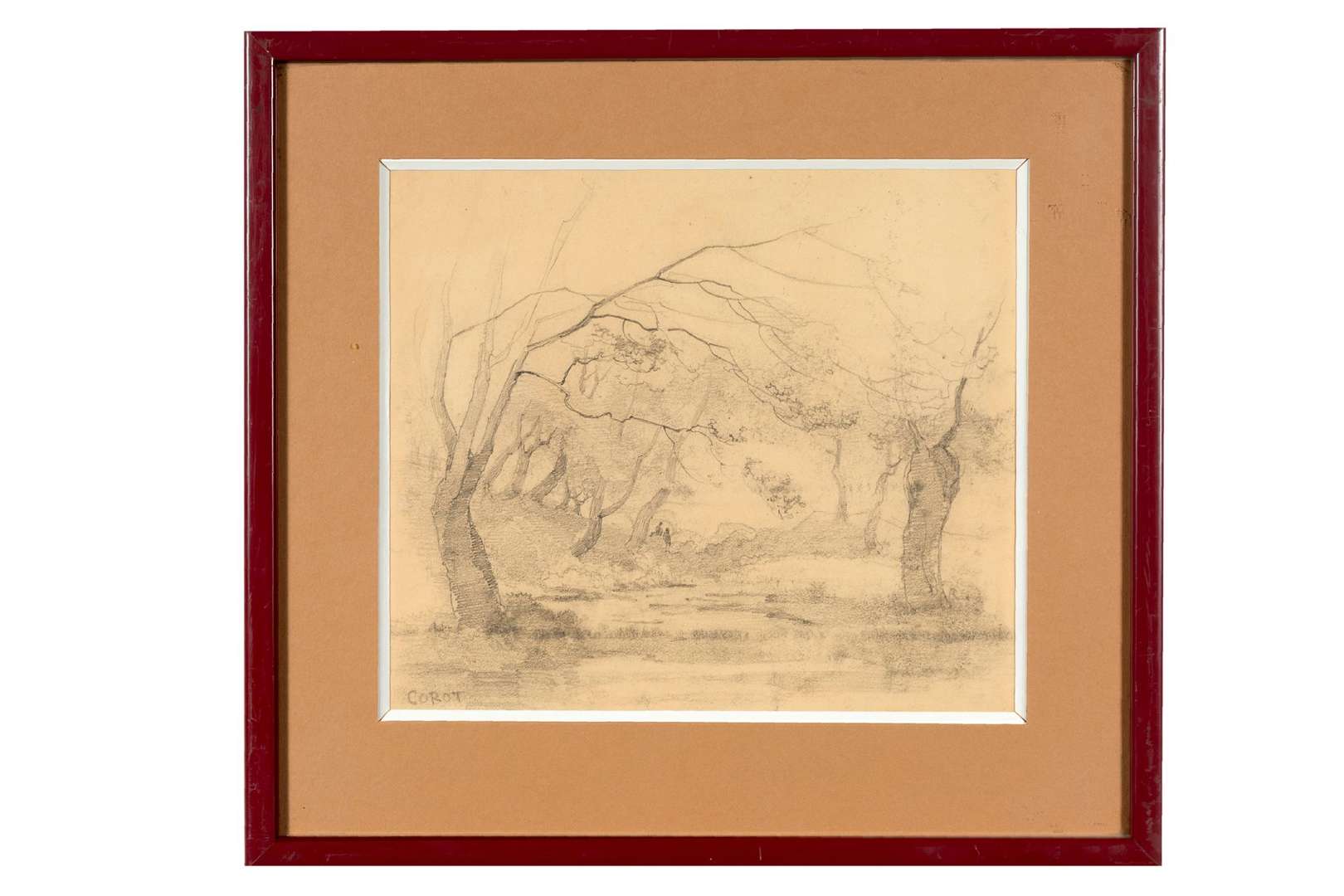 Graphite and on paper, apocryphal signature 'Corot' lower left