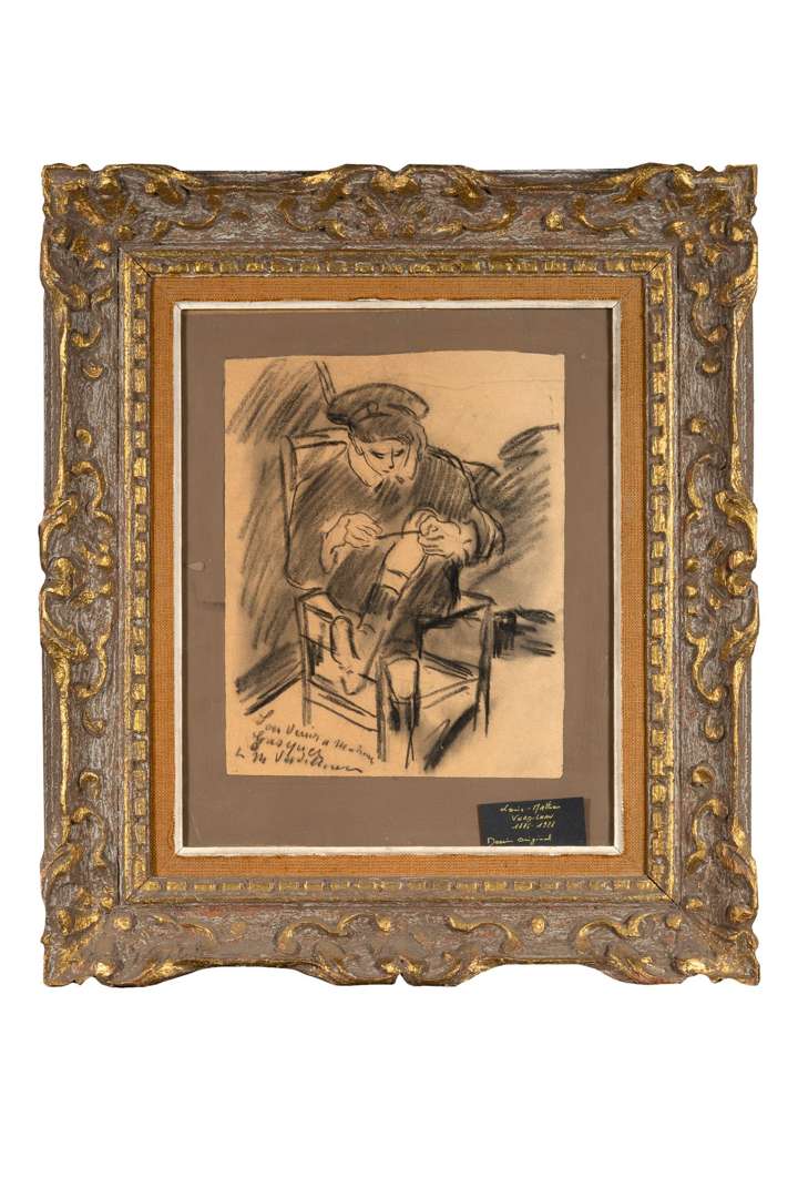 Black chalk on paper, signed and dedicated lower left