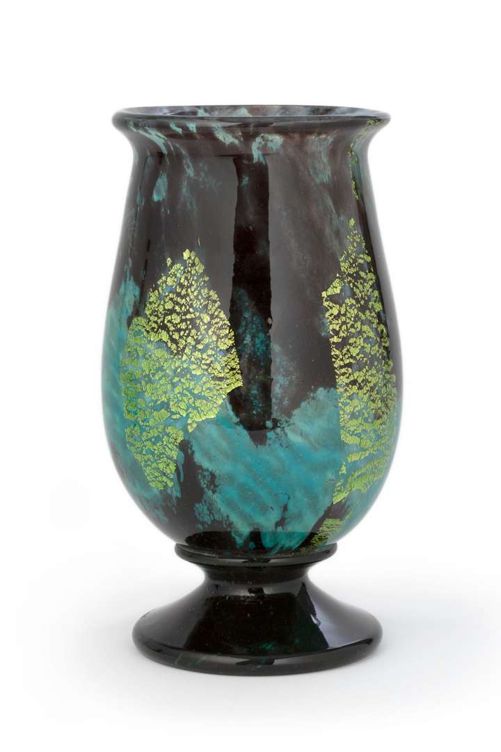 En verre multicouche, à décor marmoréen vert turquoise et aubergine, et inclusions de paillons dorés.