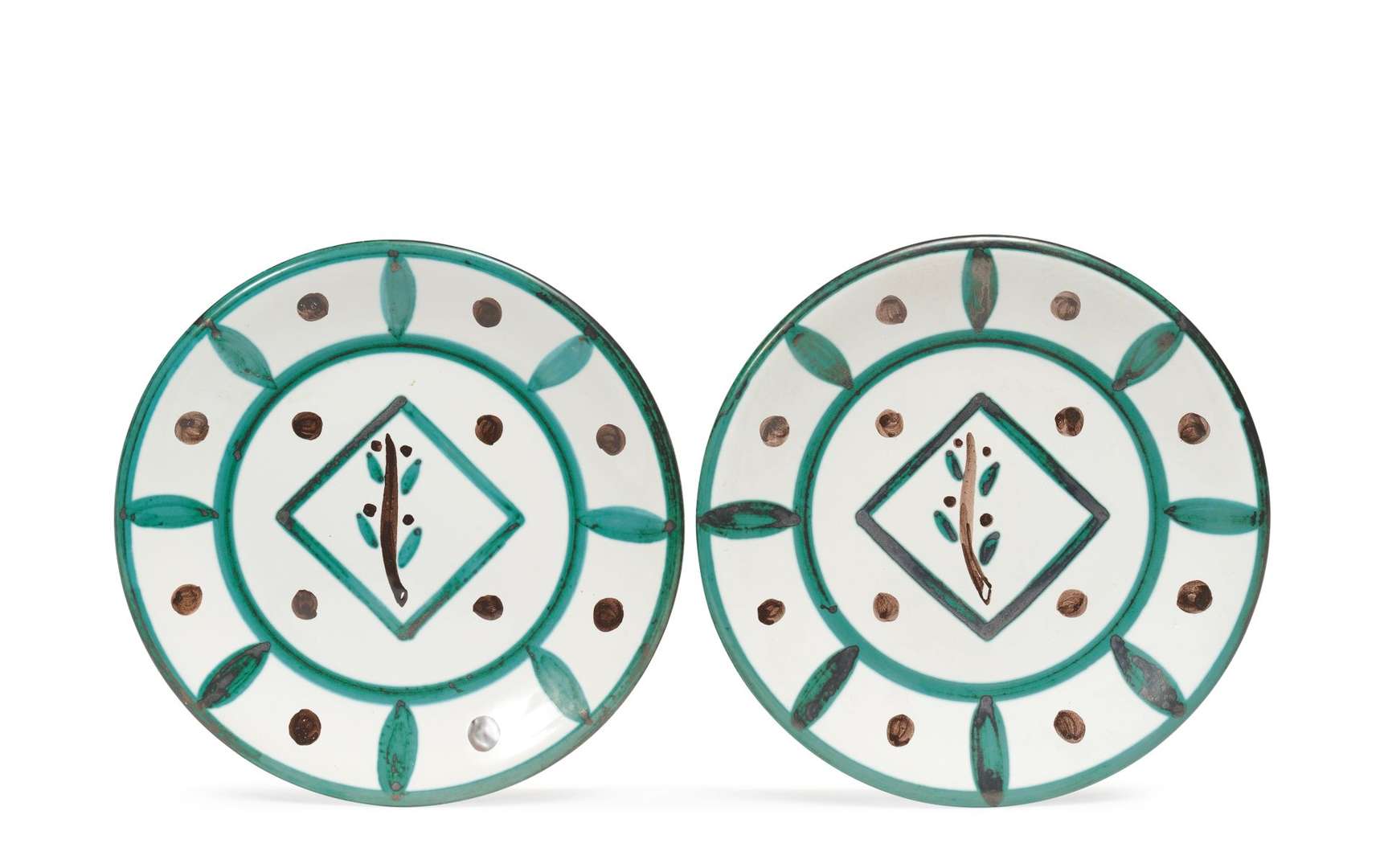 En faïence, à décor végétal émaillé vert et brun sur fond blanc.