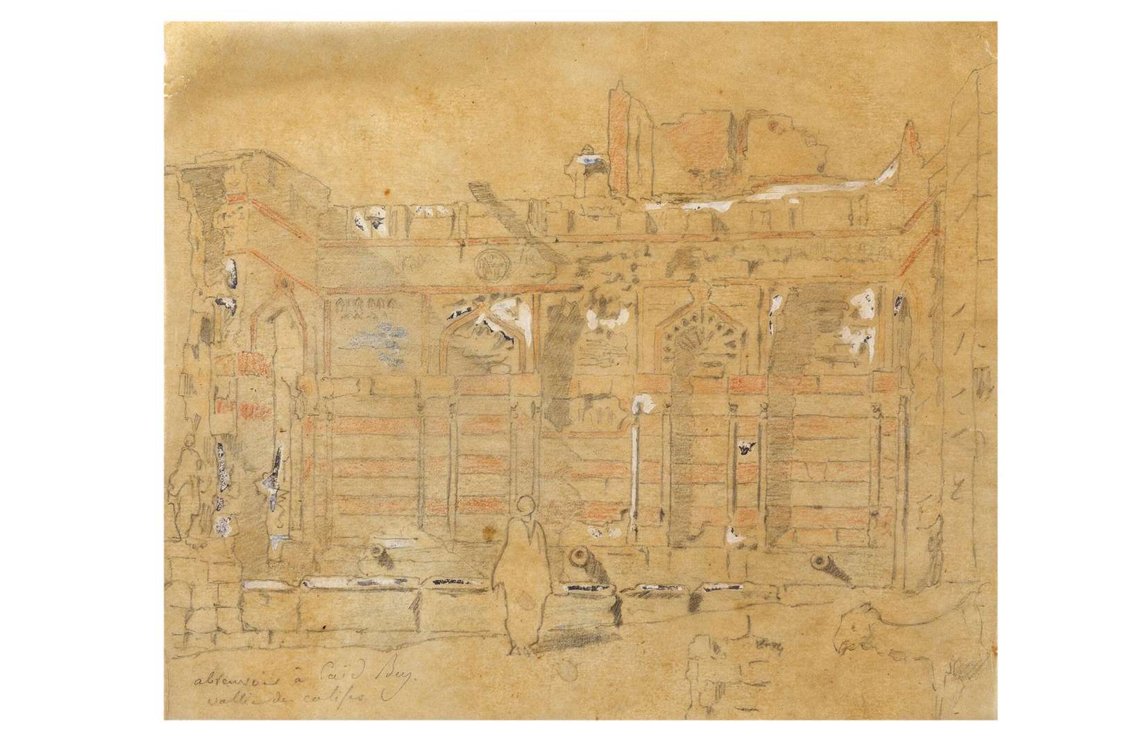 Graphite, color pencil and gouache on tracing paper, inscribed 'Abreuvoir à Caïd Bey/Vallée des Califes' lower left, unsigned