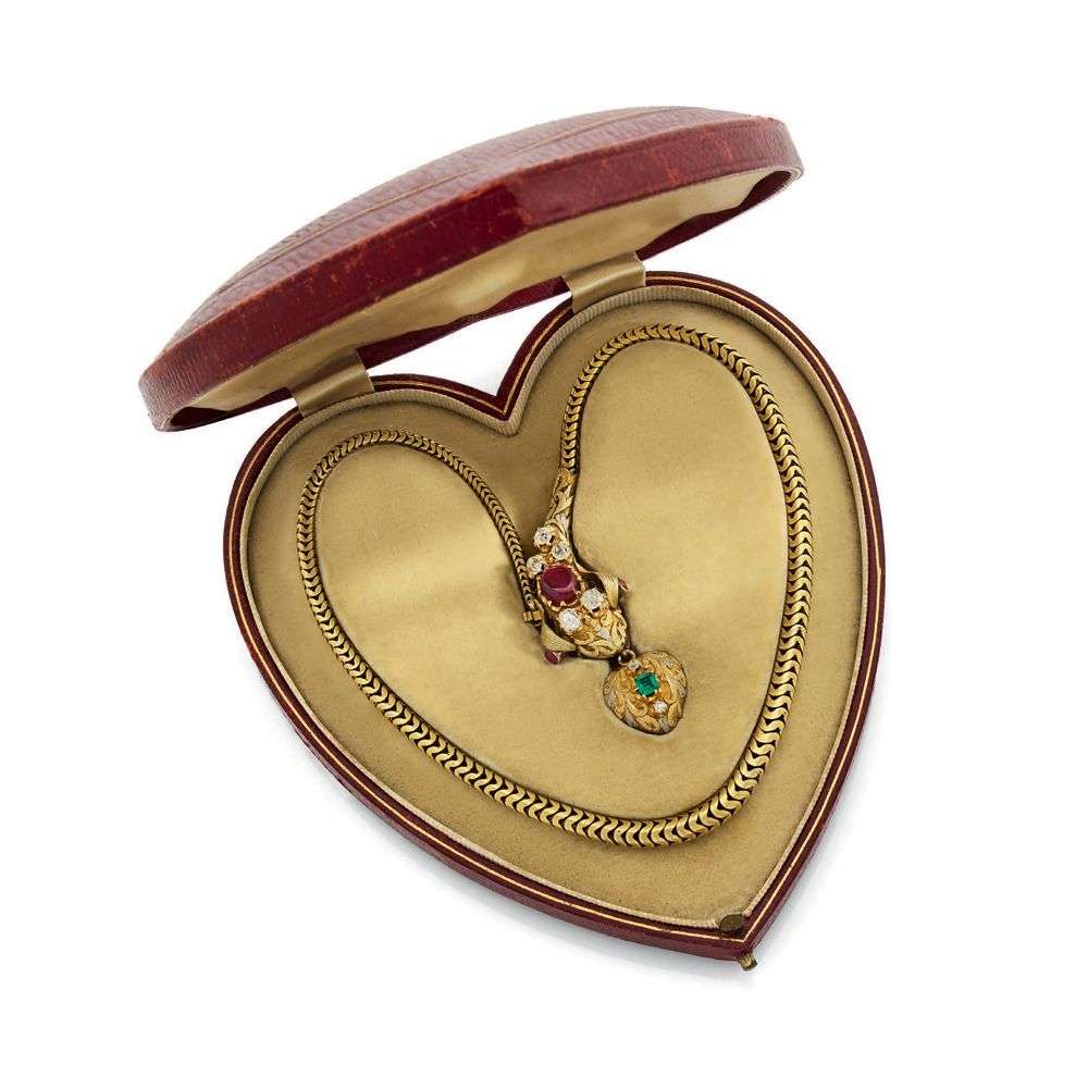 Rubis, émeraude et diamants taille ancienne